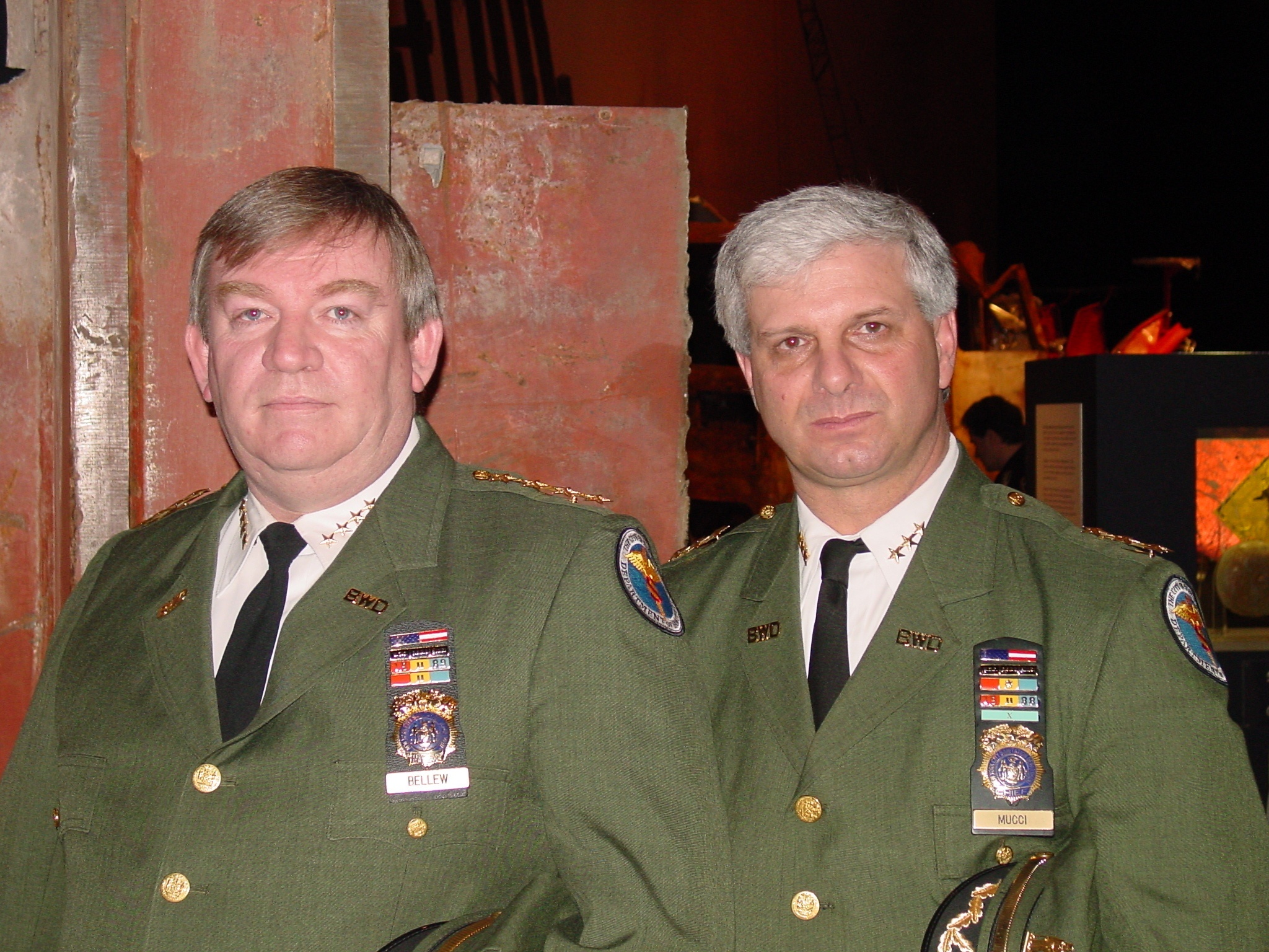 Abstract: Photograph taken from New York State Museum, Albany, NY. of Martin Bellew and another DSNY officer.