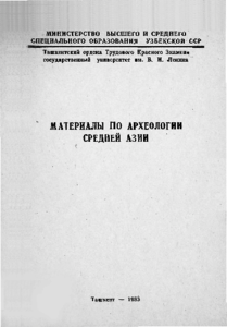 Материалы по археологии Ср. Азии (сб. научных трудов ТашГУ № 707)