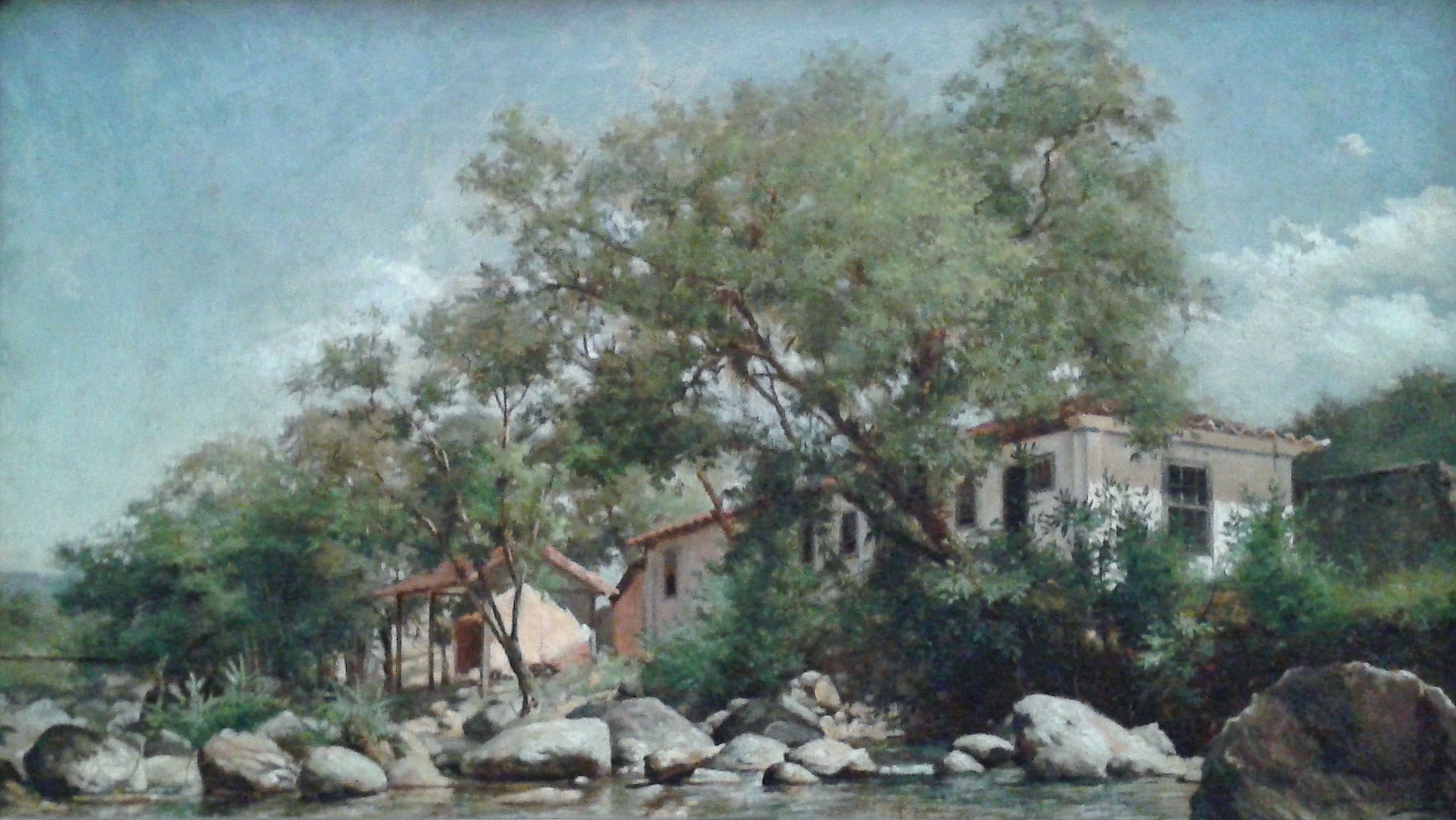 Description: Óleo sobre tela (27 x 46 cm). Museu Nacional de Belas Artes. Nascido em Niterói, [Antônio Rafael Pinto Bandeira] ingressa na Academia Imperial de Belas Artes em 1879. Após alguns anos em Salvador da Bahia, onde lecciona no Liceu de Artes e Oficios, retorna ao Rio onde participa das Exposições Gerais de 1884 e 1890 conquistando o Prêmio imperatriz do Brazil em 1885. Se suicida em 1896, atirando-se da barca Niterói-Rio. [Imagen y comentario tomados de Museu de Belas Artes, São Paulo: Banco Safra, 1985]